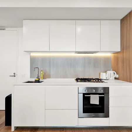 Cet appartement Sky-High Cbd Retreat City Views Walk Everywhere a une cuisine équipée avec un four et un lave-vaisselle fournis. La gare routière Southern Cross Coach Terminal est à environ 15 minutes de marche de cet immeuble.